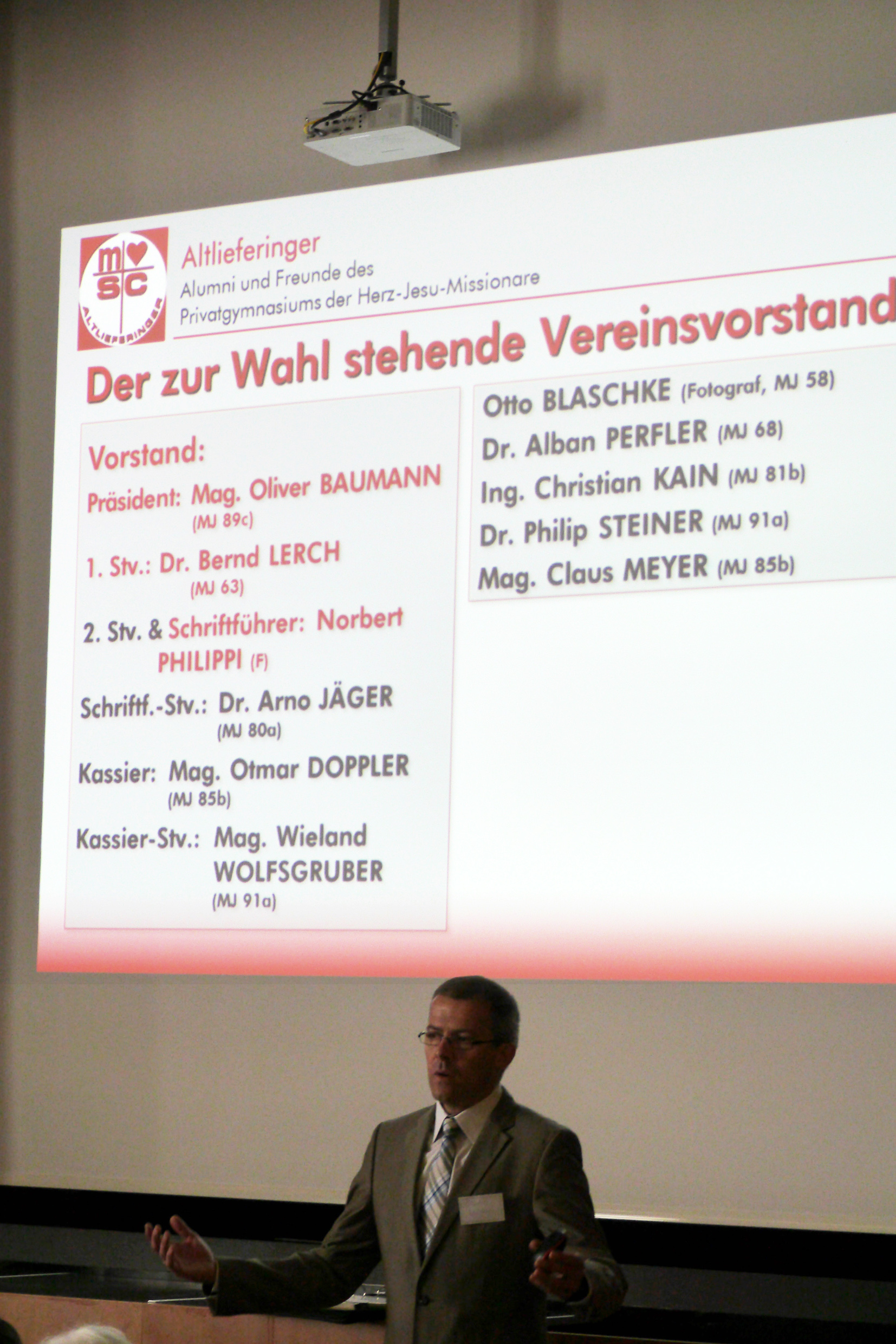 Im Rahmen der Jahreshauptversammlung wurde der aktuelle Vorstand nach seinem Tätigkeitsbericht wiedergewählt - einzig die Plätze des Präsidenten und seines Stellvertreters wurden getauscht und ein neuer Schriftführer bestimmt. Anschließend boten die Vertreter des MJ 65 einen launigen und facettenreichen Rücklick auf ihre Schulzeit, der durch die Vertreter des MJ 1990 (a/b) noch bereichert wurde. Auch die Maturaklassen 1970 und 1985b feierten ihr Jubiläum am Altlieferingertag! Das Mittagessen wurde im neuen Speisesaal eingenommen, zu dessen gelungener Gestaltung die Altlieferinger € 10.000,- beitrugen. Von dieser fröhlichen und unterhaltsamen Veranstaltung gibt's hier ein paar Impressionen.
