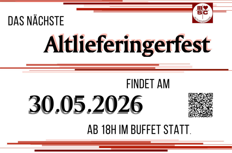 Das nächste Altlieferingerfest findet am letzten Maiwochenende 2026 ab 18:00 Uhr im Buffet statt.