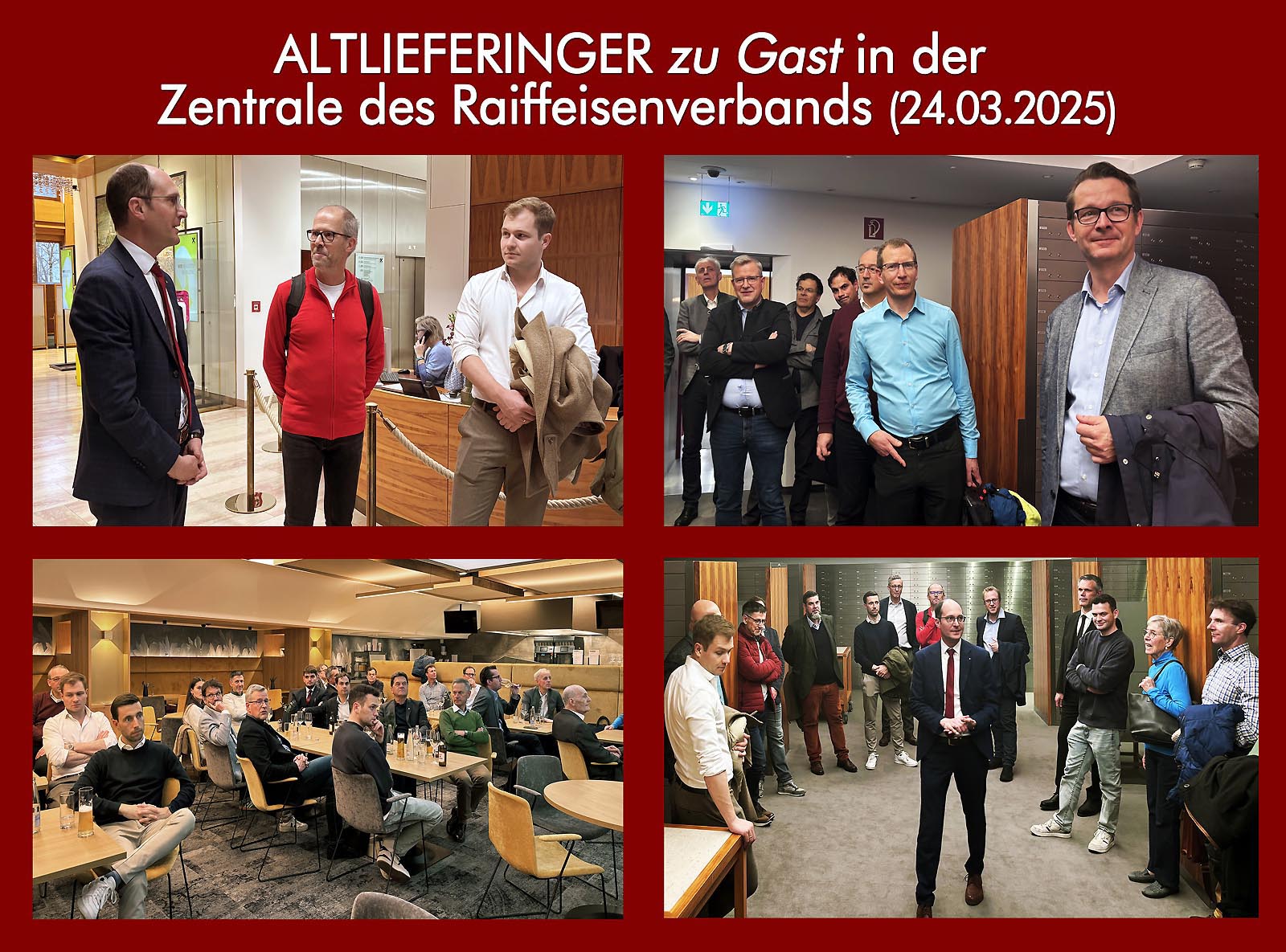 Mit über 35 Teilnehmern fand unsere Reihe Altlieferinger zu Gast in der Zentrale des Raiffeisenverbands Salzburg eine erfreuliche Fortsetzung! Von Christoph Leinberger (MJ 99c) und Heinz Konrad (MJ 79b) eingeladen kam am Nachmittag des 24. März eine beachtliche Gruppe zusammen, um neben dem Zugang zu Safeanlage und Hauptkassa auch Einblick in Struktur und Ausrichtung des Raiffeisenverbands zu bekommen. Christoph Leinberger, Abteilungsleiter im Bereich Firmen- & Institutionelle Kunden, führte durch Haus und Keller und weckte charmant Neugier und Staunen. Auch Generaldirektor Heinz Konrad nahm sich die Zeit zu uns zu stoßen und stellte sich den Fragen seiner Gäste. Zum gemütlichen Abschluss gab es in der neu geschaffenen Mitarbeiterkantine kulinarische Leckerbissen und gemütliches Beisammensein. Vielen Dank unseren großzügigen Gastgebern und bis zum nächsten Mal!