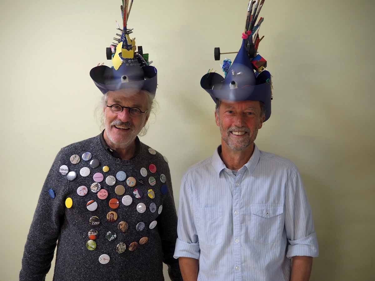 Ende Oktober 2021 sind mit Bernhard Landsgesell und Hans-Peter Haas zwei überaus kreative Lehrer und Künstler unserer Schule in den wohl verdienten Ruhestand getreten. Im Rahmen einer sehr launigen Feier – wie nicht nur der Kopfschmuck auf dem Bild verrät – ließen das BE-Kollegium und Impro-Theater-Spieler die beiden Urgesteine nicht nur hochleben, sondern auch einige Stationen aus deren Lehreralltag satirisch gewürzt revuepassieren: ein stimmiger und sehr unterhaltsamer Abschluss zweier bemerkenswerter Lehrerkarrieren. Wir hoffen, beide können ihre Kreativität nun noch ausführlicher ausleben und lassen sich ab und zu auch bei uns (Altlieferingern) wieder blicken. Alles Gute für die „Zeit danach“!