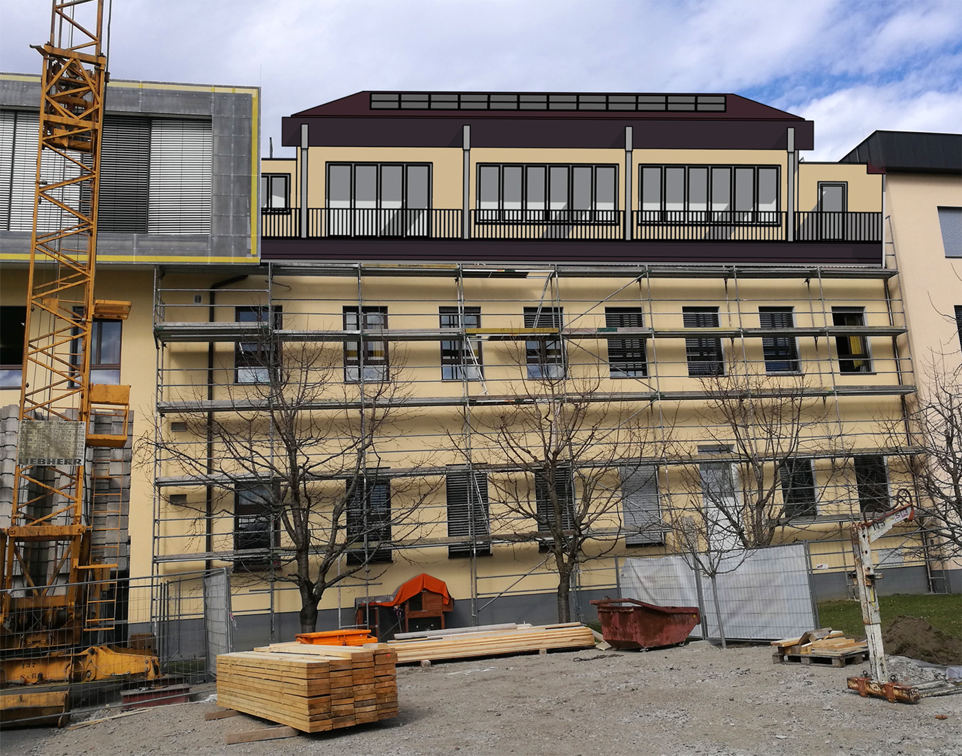 Es geht wieder weiter … Um dem nach wie vor wachsenden Raumbedarf unserer Schule gerecht zu werden beginnt dieser Tage eine weitere Aufstockung des Schulgebäudes: